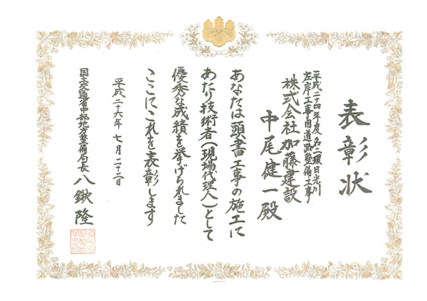 施工事例 橋梁工事一覧 橋梁その3 施工事例 EXAMPLES 橋梁平成24年度 名二環日光川左岸工事用道路整備工事 DATA 工事名 平成24年度 名二環日光川左岸工事用道路整備工事 施工年 2013年9月 発注者 国土交通省 中部地方整備局 愛知国道事務所 工事場所 愛知県 名古屋市 表彰 技術者 環境 環境提案書、水生生物展示(社務所)