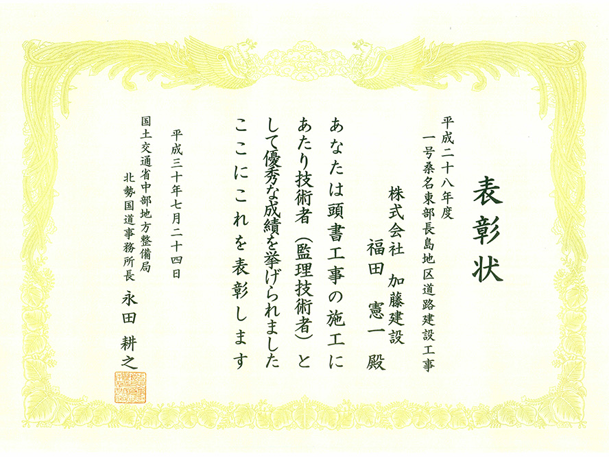 施工事例 道路改良工事一覧 道路改良その8 施工事例 EXAMPLES 道路改良平成28年度 1号桑名東部長島地区道路建設工事 わくわく工事現場(動画) 地中47mの深層地盤改良!エポコラム工法とは?&鉄筋組立中!巨大カルバートの骨組みを構築!(2017年12月放送) DATA 工事名 平成28年度 1号桑名東部長島地区道路建設工事 施工年 2018年3月 発注者 国土交通省中部地方整備局 北勢国道事務所 工事場所 三重県 桑名市 環境 環境提案書、植生調査、ゆるきゃら活用、グリーンカーテン、地域祭り参加、万能塀でのPR(環境掲示、河川の魚、建設時の写真展示、他)