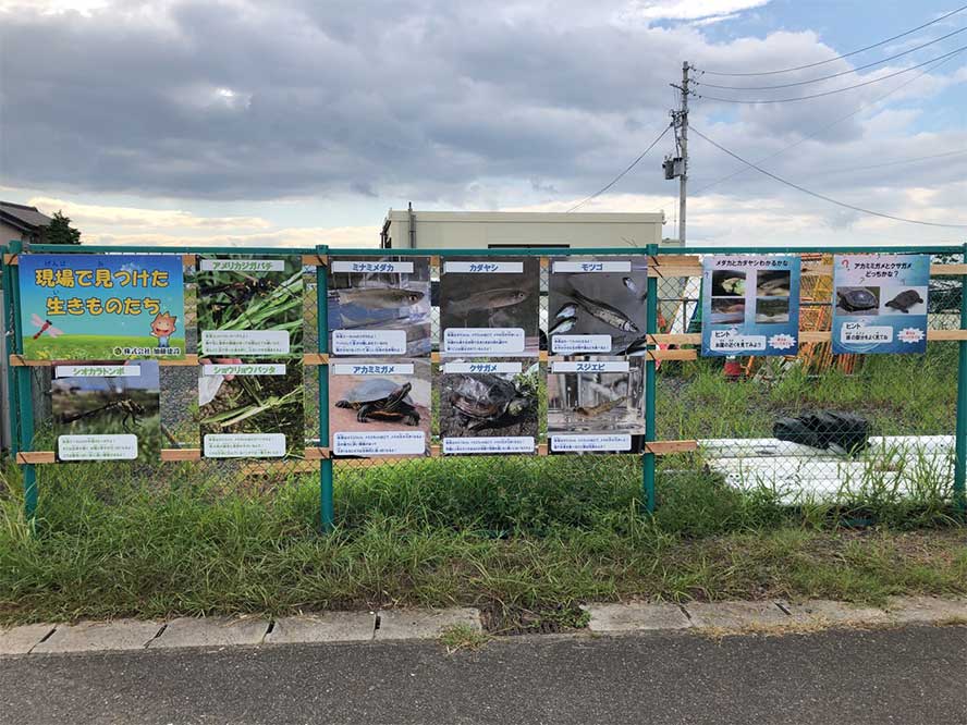 施工事例 道路改良工事一覧 道路改良その11 施工事例 EXAMPLES 道路改良道路改良工事(その2) DATA 工事名 道路改良工事(その2) 施工年 2020年 2月 発注者 愛知県 海部建設事務所 工事場所 愛知県 あま市 環境 環境提案書、植生調査、水生生物調査、環境掲示板、現場にいた生物の掲示板(クイズ形式)