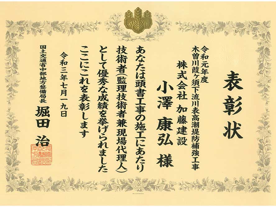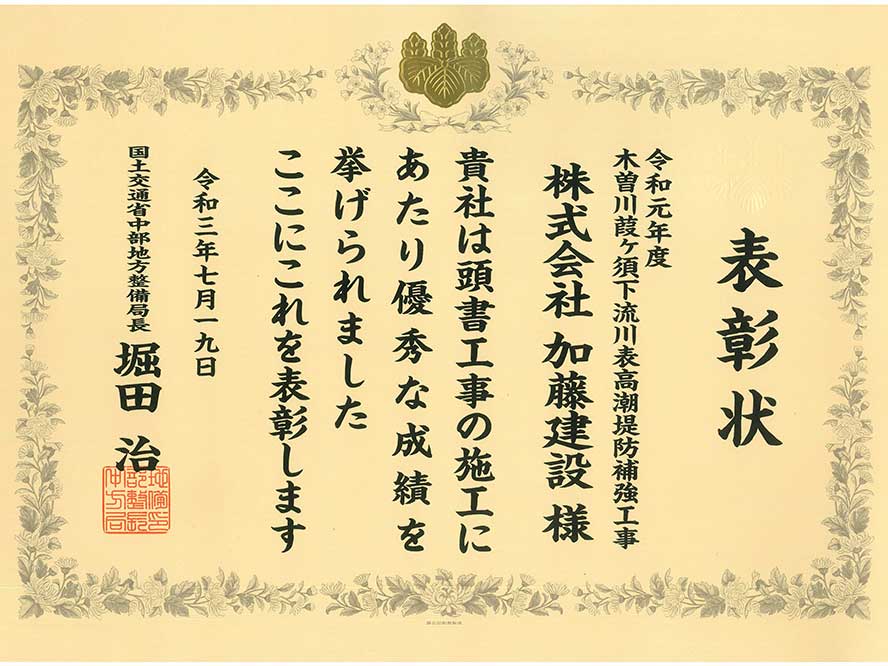 | 工事名 | 令和元年度 木曽川葭ヶ須下流川表高潮堤防補強工事 |