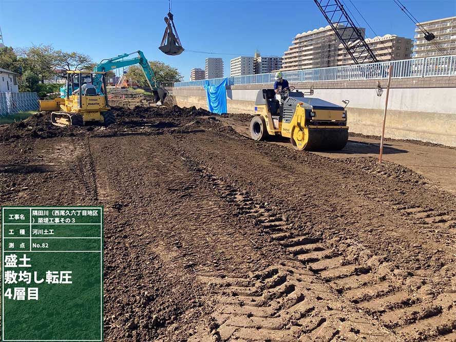 施工事例 護岸・堤防補強工事一覧 護岸・堤防補強その18 施工事例 EXAMPLES 護岸・堤防補強隅田川(西尾久六丁目地区)築堤工事その3 DATA 工事名 隅田川(西尾久六丁目地区)築堤工事その3 施工年 2022年 2月 発注者 東京都 江東治水事務所 工事場所 東京都 荒川区 環境 植生調査、野鳥調査、濁水処理