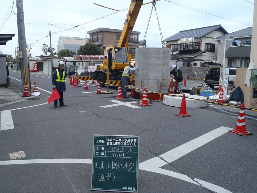 施工事例 上下水道工事一覧 上下水道その1 施工事例 EXAMPLES 上下水道あま市公共下水道事業 管きょ布設工事(23-1) DATA 工事名 あま市公共下水道事業 管きょ布設工事(23-1) 施工年 2012年2月 発注者 愛知県 あま市 工事場所 愛知県 あま市 環境 環境提案書、水生生物調査、環境掲示板、工法看板