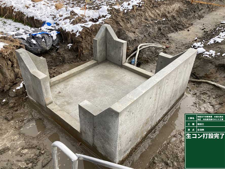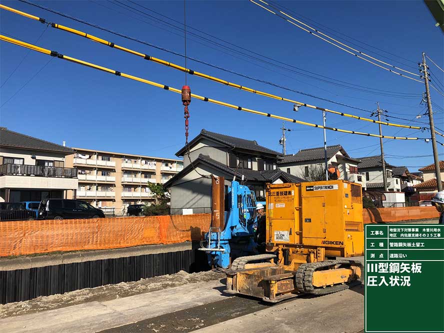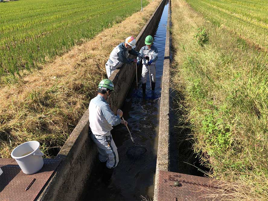 施工事例 農業用水工事一覧 農業用水その5 施工事例 EXAMPLES 農業用水地盤沈下対策事業 木曽川用水地区 内佐屋支線その25工事 わくわく工事現場(動画) 静かな重機?~サイレントパイラー登場!!~& 現場が進むのは職人さんのおかげ!!~農業用水路完成~(2021年4月放送) DATA 工事名 地盤沈下対策事業 木曽川用水地区 内佐屋支線その25工事 施工年 2021年 3月 発注者 愛知県 海部建設事務所 工事場所 愛知県 愛西市 環境(エコ活動) 植生調査、水生生物調査、野鳥調査、生物保護(カエル)、環境掲示板