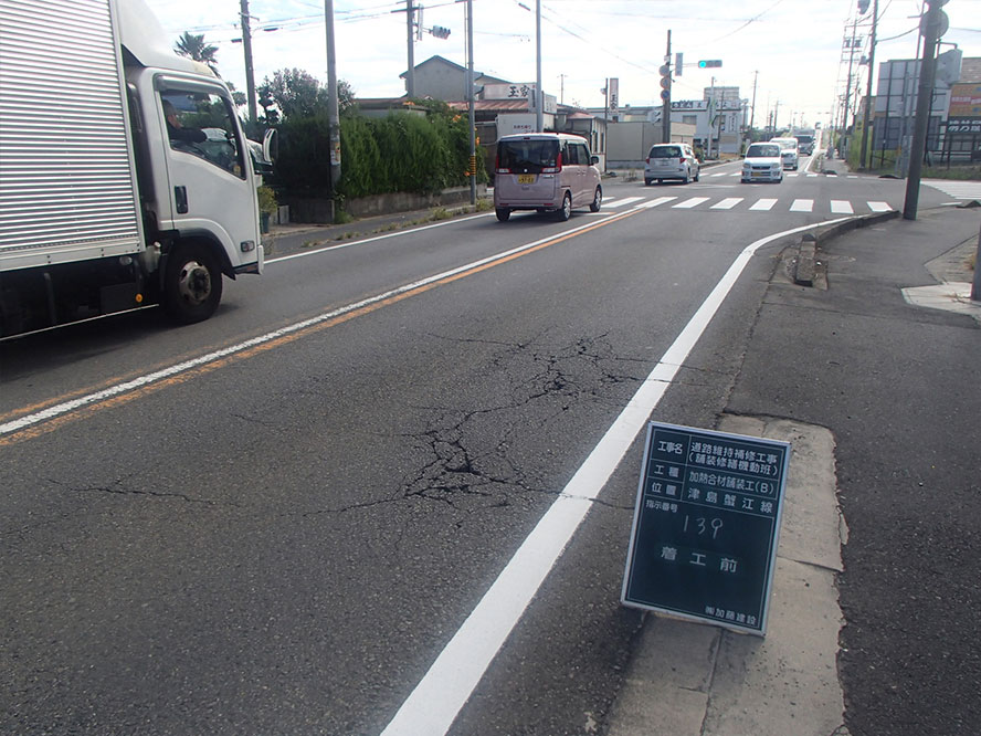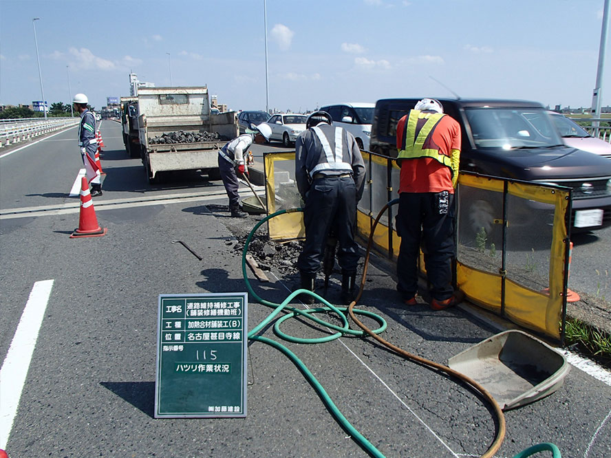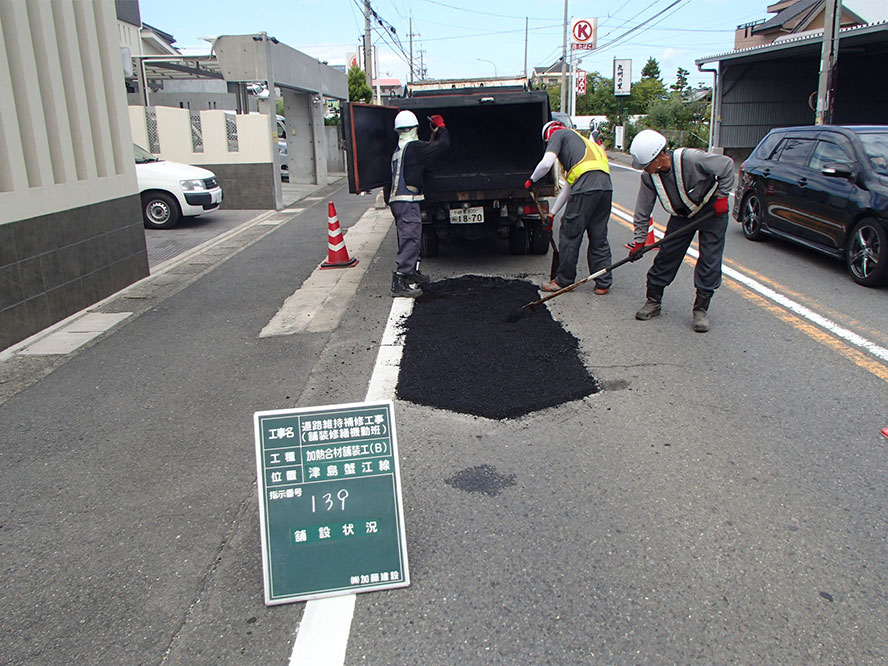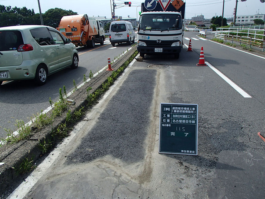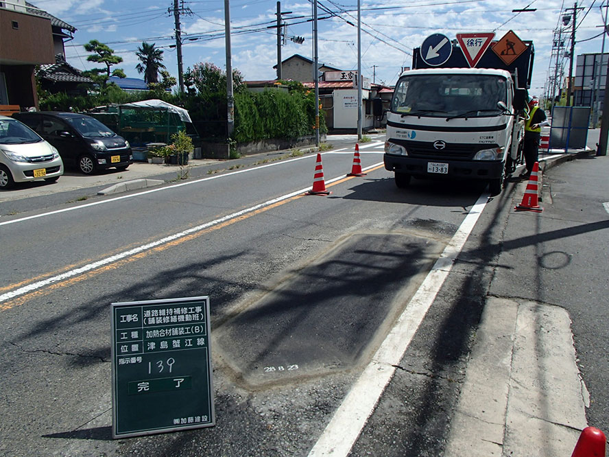 施工事例 維持・補修一覧 維持・補修その3 施工事例 EXAMPLES 維持・補修道路維持補修工事(舗装修繕機動班) DATA 工事名 道路維持補修工事(舗装修繕機動班) 施工年 2017年3月 発注者 愛知県 海部建設事務所 工事場所 愛知県 海部建設事務所管内