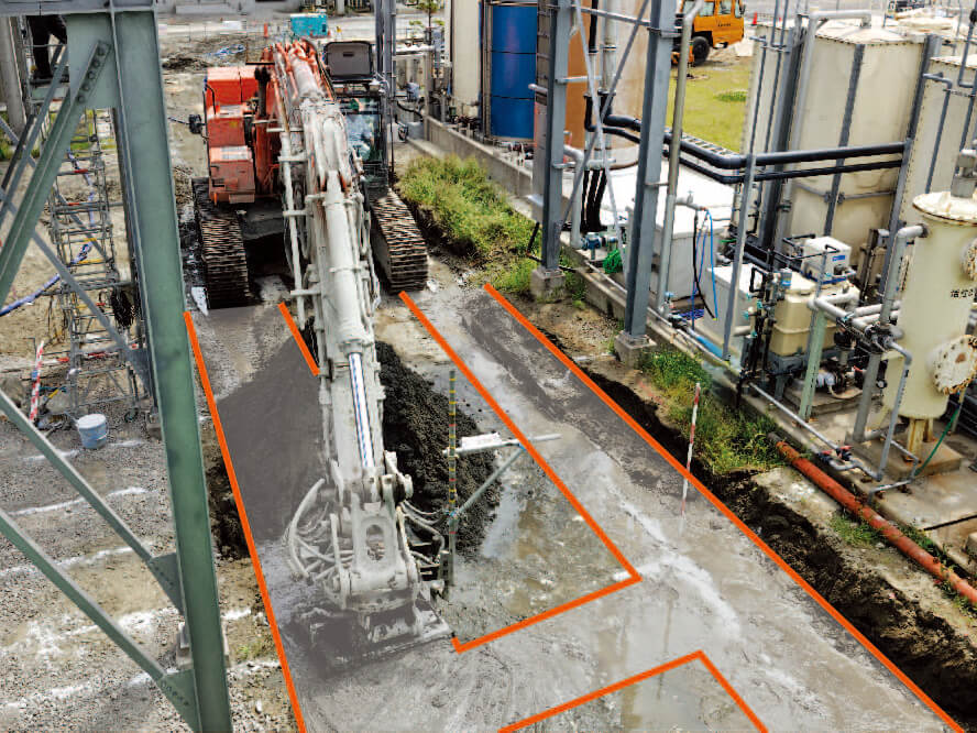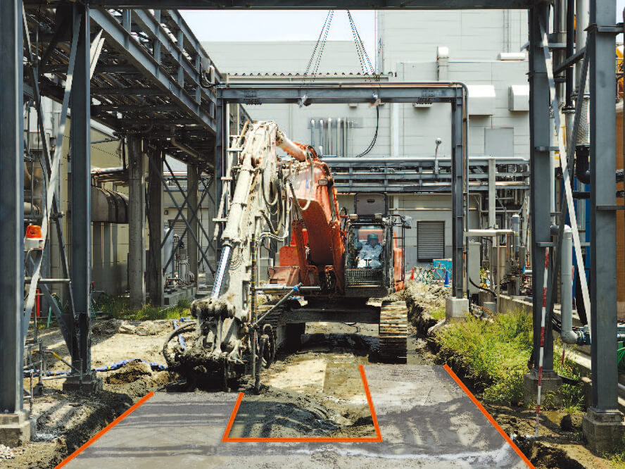 沿岸地域にある工場にとって、地震に伴う液状化は非常に重要な問題である。特に供用しながらの液状化対策を実施する場合には、狭隘なスペースでの施工を余儀なくされる。 新たに開発した角度可変ブラケットを装備したパワーブレンダーにより、作業スペースと改良体配置から任意の角度に設定し、地盤改良を実施する。このブラケットを用いることで作業スペースは最低5m程度の範囲となり、従来では不可能であった作業スペースにおいても液状化対策が可能となった。