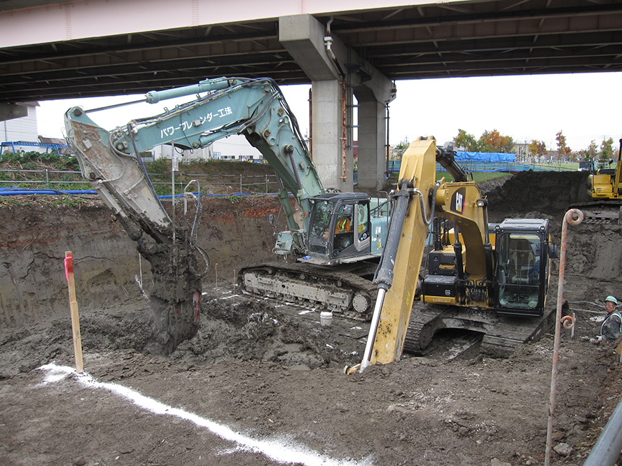 施工事例 ボックスカルバート・下水管等の基礎一覧 ボックスカルバート・下水管等の基礎その2 施工事例 EXAMPLES ボックスカルバート・下水管等の基礎一般国道12号大和改良工事 DATA 工事名 一般国道12号大和改良工事 改良深度 11.1~13.0m 工事場所 北海道岩見沢市