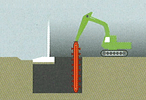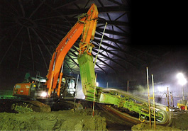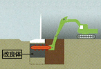 - A: いつものパワーブレンダーの施工とは違って、基礎下の直接施工ですので施工サイクルが複雑なんですよ。(施工手順参照)だから、常に神経を使ってましたね。 それと、施工管理の写真が大量で整理するのが大変でした。 いずれにしても苦労はしましたが、いい経験を積むことができました。