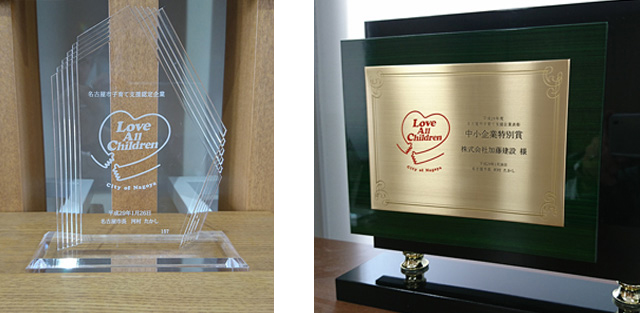 この度、名古屋市の子育て支援企業認定・表彰制度におきまして、