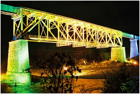 ライトアップされた鉄骨橋(何となく構造が似てませんか)