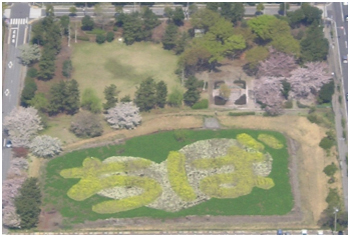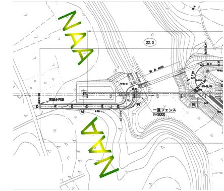 本工事場所は空港内施設であるためセキュリティーが厳しく一般の人は入れない場所でした。一般の人が確認できるとすれば機内からしかないので、自然な景観にマッチする植栽にて花文字を作ってみてはいかがでしょうか?