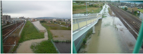 昔から雨が降ると川に水が集まるらしく、今回は予め掘削しておいた為、施工ヤードが調整池の役目をしたようです。もし掘削していなかったらと考えるとぞっとしてします。