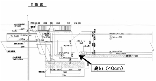 現設計ではポンプピットのスクリーン下部がコンクリートにより40cm上がっているので