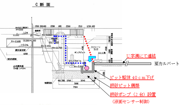 5)生活排水などが流入するようなので、カルバートとポンプピットはU字溝でつなぐ