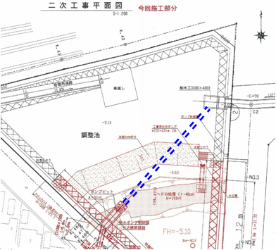 2)このままだとポンプピット内に砂泥が溜まるので排砂ポンプ設置用のピットを作る