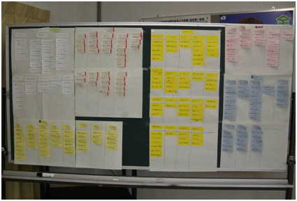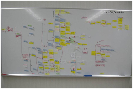 あとは系統付けです。何がどのように繋がっているのかを皆さんで確認しながらホワイトボードに順番に張っていきます