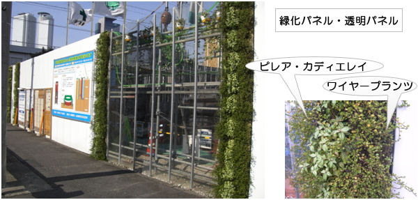 ☆工事現場の歩道に面した仮囲いの一部に透明パネル(幅3m分)を使用して中の様子がいつでも見える現場にしました。パネルの一部を透明にすることにより道行く人々から見えることで少しでも工事に対しての安心感を持っていただけたらと思い実施しました。またその周囲には壁面緑化を行い視覚的にもやさしいイメージを造りました。