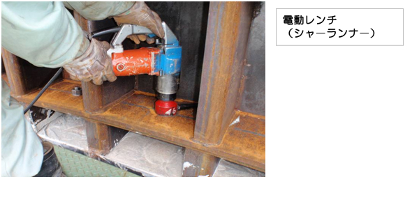 ☆通常使用するインパクトレンチから電動レンチに機具を変更することにより、騒音の発生を低減しました。