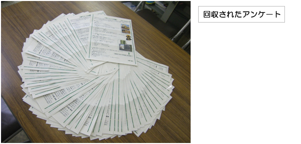 アンケートを行った内容は、振動騒音・仮囲いの透明化や緑化・装飾ポスター・工事瓦版などです。良かった部分、悪かった部分、多数の意見をいただき、今後の環境活動の大きな参考になりました。特に評判の良かったのは「瓦版」で、工事内容がわかり興味が持てたとの意見を多くいただきました。