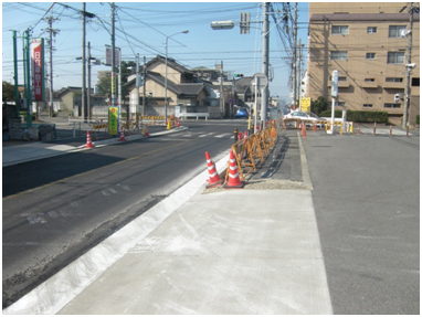 歩道及び車道の整備工事です。片側1車線の道路で国道に並行している為、抜け道として使われることも多い道路です。