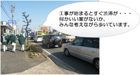 ①○○○中央道路上再生工事 ・車道の切削オーバーレイの工事現場です。片側2車線の県道で通行量が多くまた店舗も連立しています。