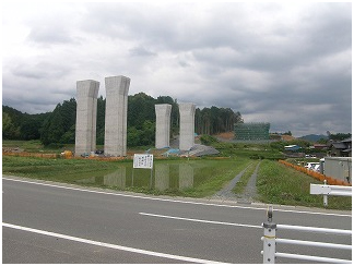 写真に写っている橋脚の奥と手前に今回新しく建設します。