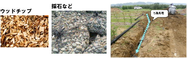 その対策として現場に側溝を掘り、その中に砕石もしくは伐採木等をチップ化したものを詰め、ろ過処理を行ってはどうでしょうか。