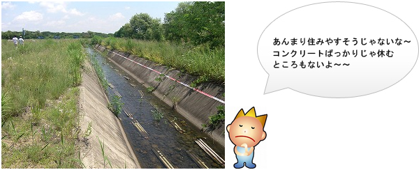 こちらの研究所では直線的な川、蛇行している川、流れの速い川・遅い川など様々な条件の川が作られ、その条件下において生物の生息数がどのように変化するかを調べ、生物多様性に富んだ河川を全国に広めるべく活動をしてみえました。