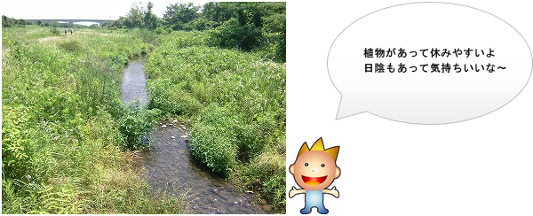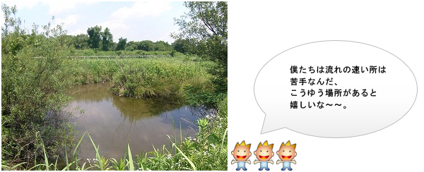 こちらはワンドと呼ばれ、本流と繋がっていますが流れの停滞している場所で稚魚が育つに適した場所となるそうです。