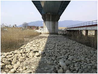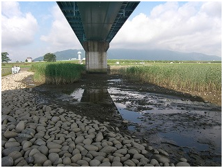 こちらの現場では現場にある玉石を撤去することにより、ヨシの生育範囲を広げると共に撤去した玉石を護岸に設置することにより生物の住処を作るという生物多様性に配慮した活動を行いました。