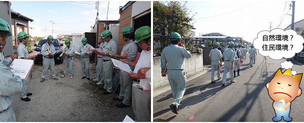 各部署から総勢12人が集まり、工事現場における環境活動提案を行う為、2現場を視察しました。