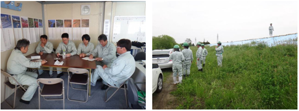 現場を視察後、担当の服部部長、西尾さんから工事の説明を受けて、自然や地域へのより良い環境の為、何か出来ないかな~と考えます。