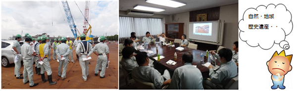 現場担当者の諏訪さんから工事の説明を受けて、何か環境に良いこと出来ないかな~と考えます。