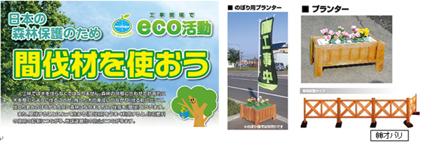 間伐材を利用したプランターを設置するなど、環境への配慮はどうでしょうか。環境にも見た目にもやさしい工事現場になりそうです。