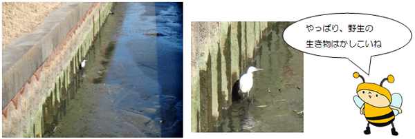 水替えをすると早速サギがやってきました。餌の小魚がいる証拠です。