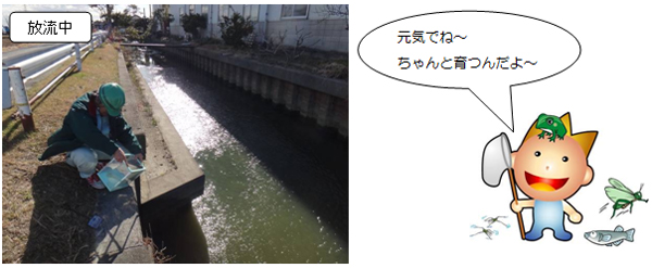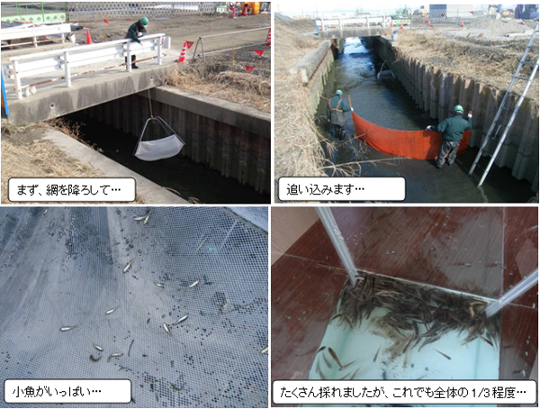 名古屋市港区での水路工事の現場で、既設水路の水替え工がありましたので生態調査、ならびに