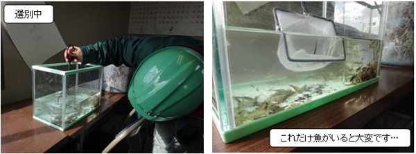 採取 ⇒ 同定・選別 ⇒ 駆除・放流 の繰り返しで、ほぼ丸一日かかりましたが、