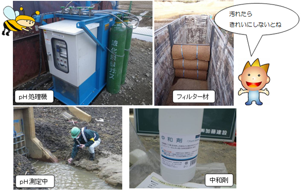 どうしても改良工事の場合はセメントを使用するので表面水等のpHが上昇する場合があります。