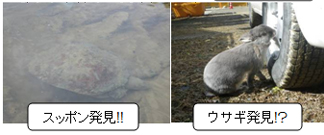 | おまけ この現場では色々な生き物が 見つかりました。 1)アオサギ 2)スッポン 3)ウサギ (ネザーランドドワーフ) |
