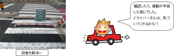 普通は、段差があると1mくらいすり付けるのですが、車で走ると結構“ガタンッ”ってなりますよね。