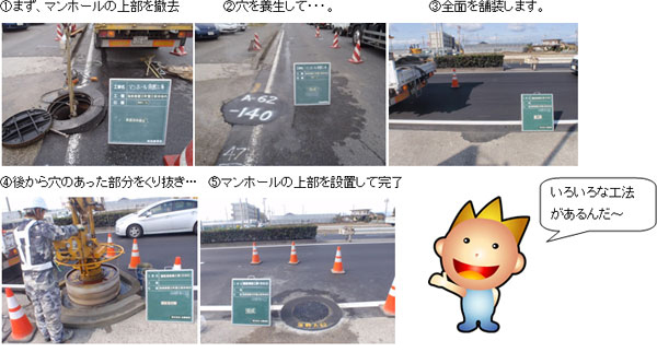 もうひとつ段差の解消で、マンホールの後施工“エポ工法”の紹介です。