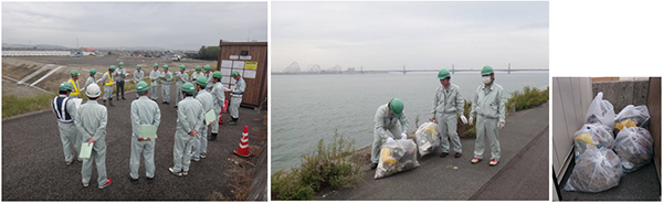 現場を視察しながらゴミ拾いも実施しました。 流れ着いたゴミでしょうか、大量に集まりました。 まずゴミを出さない、捨てない事が自然を守る第1歩だと感じました。 その他にも、環境に配慮したこと、釣り人などとのコミュニケーションなど色々な提案が出ました。