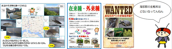こちらの現場では近くの水路と河川の生態調査を行いました。 結果は・・・・・外来種だらけでした! 生態系の崩壊です!!よって調査結果と啓発ポスターを掲示しました。
