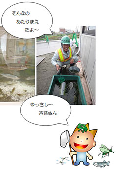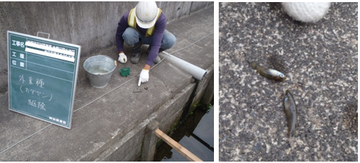 オイカワやスジエビを無事に工事から守ることが出来ました。