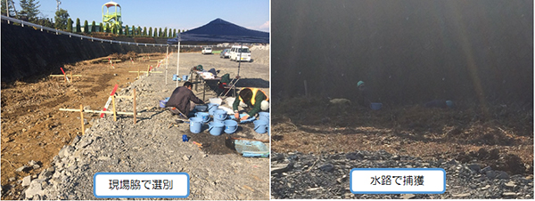 こちらがその実施状況、選別作業と捕獲作業の様子です。