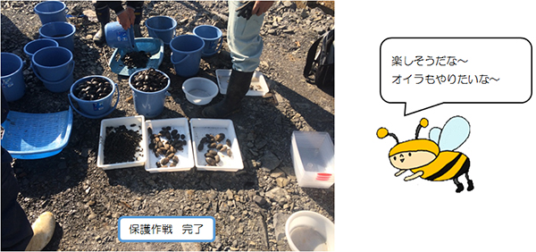 市の職員、学識経験者の方の主導の元、元請さんと一緒に保護活動に参加しました。