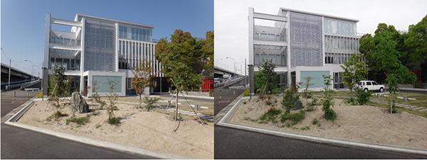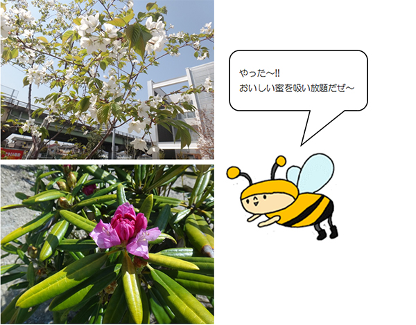 気温も暖かくなり、春爛漫な感じですね。 今年の冬が寒かったせいか、春が来ると気分がウキウキします。 さて、4月の中旬(左)と4月の後半(右)の 本社ビオトープの様子はというとこんな感じ。