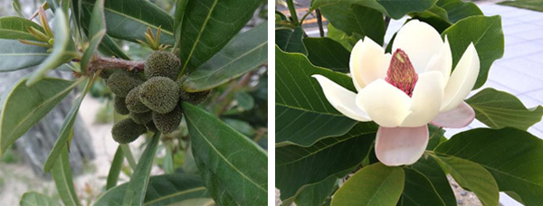 でもよく見ると、ヤマモモの実(左)がついたり、オオヤマレンゲの花(右)が咲いたりしましたよ。