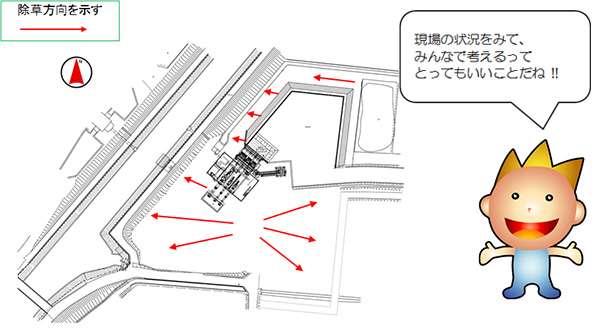 『今日は、みんなで除草のやり方考えるから集まって~』