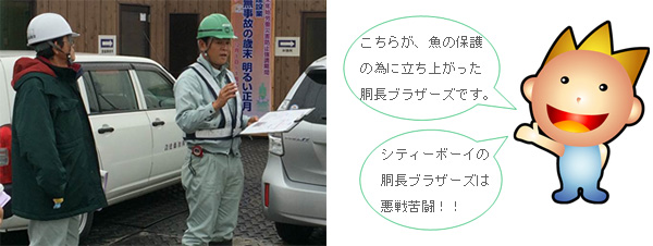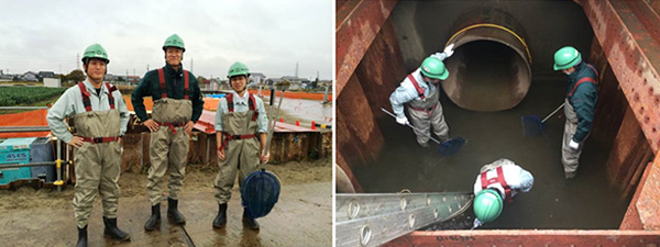こちらの現場では、水路の水抜きの際に魚の保護を行いました。