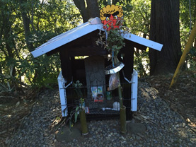 近くにはお地蔵さんが。お騒がせしますが、どうぞ工事を見守ってください。
